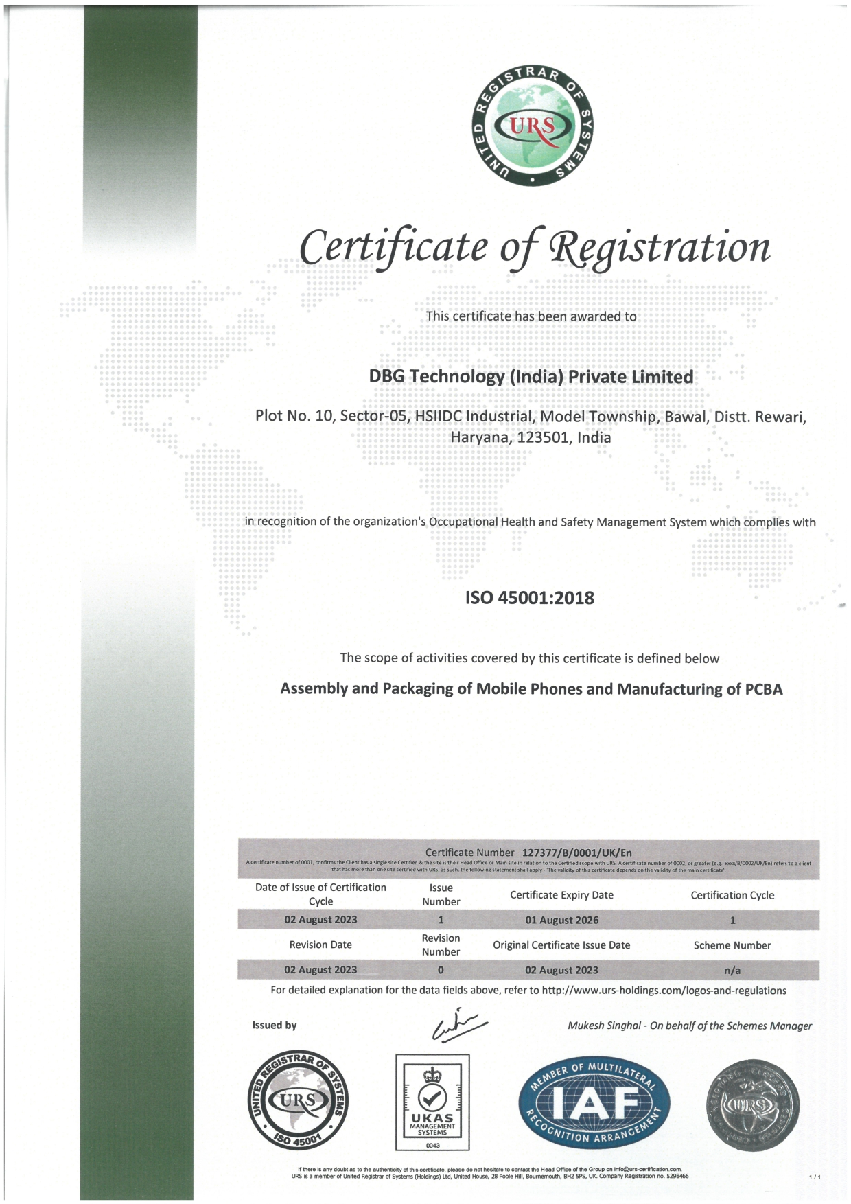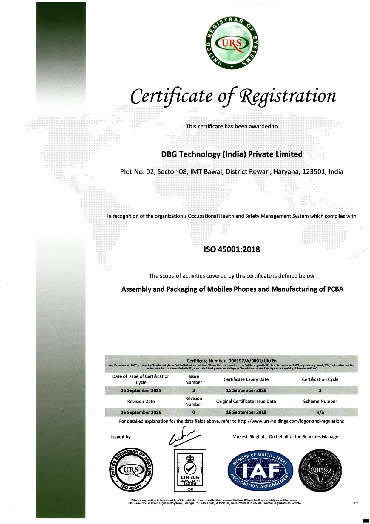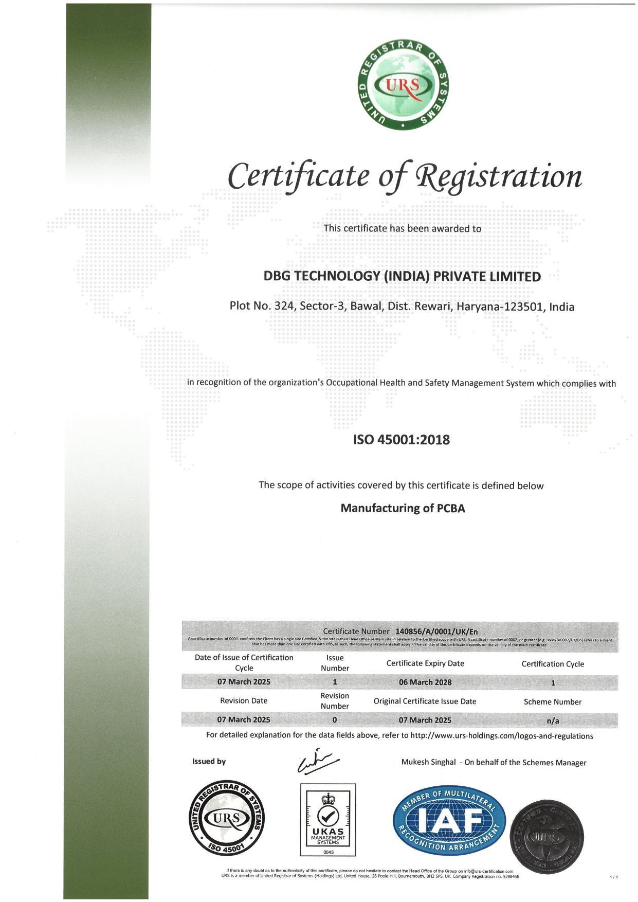 DBG India is an ISO 9001:2015, ISO 14001:2016 and ISO 45001:2018 Certified Company.
