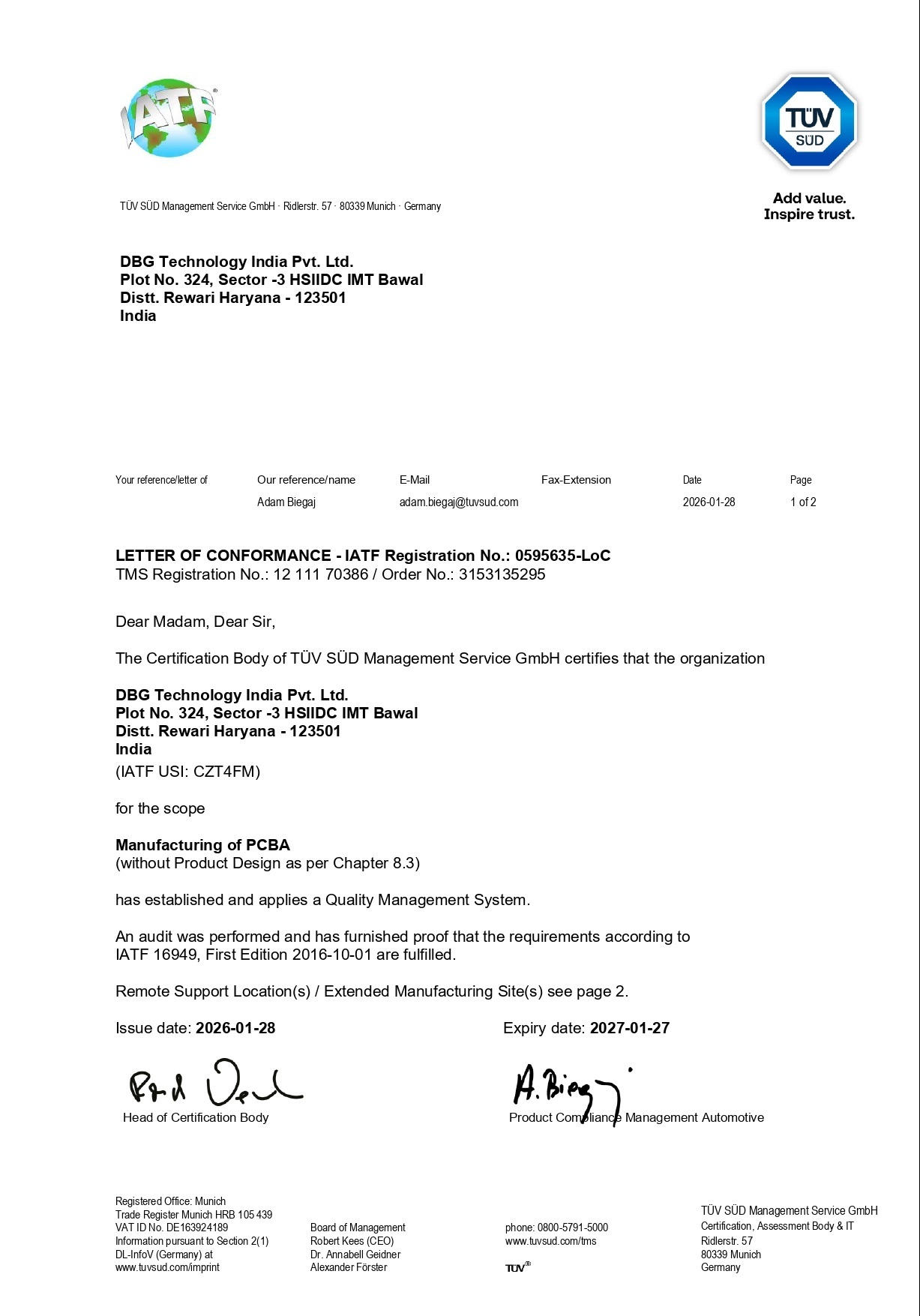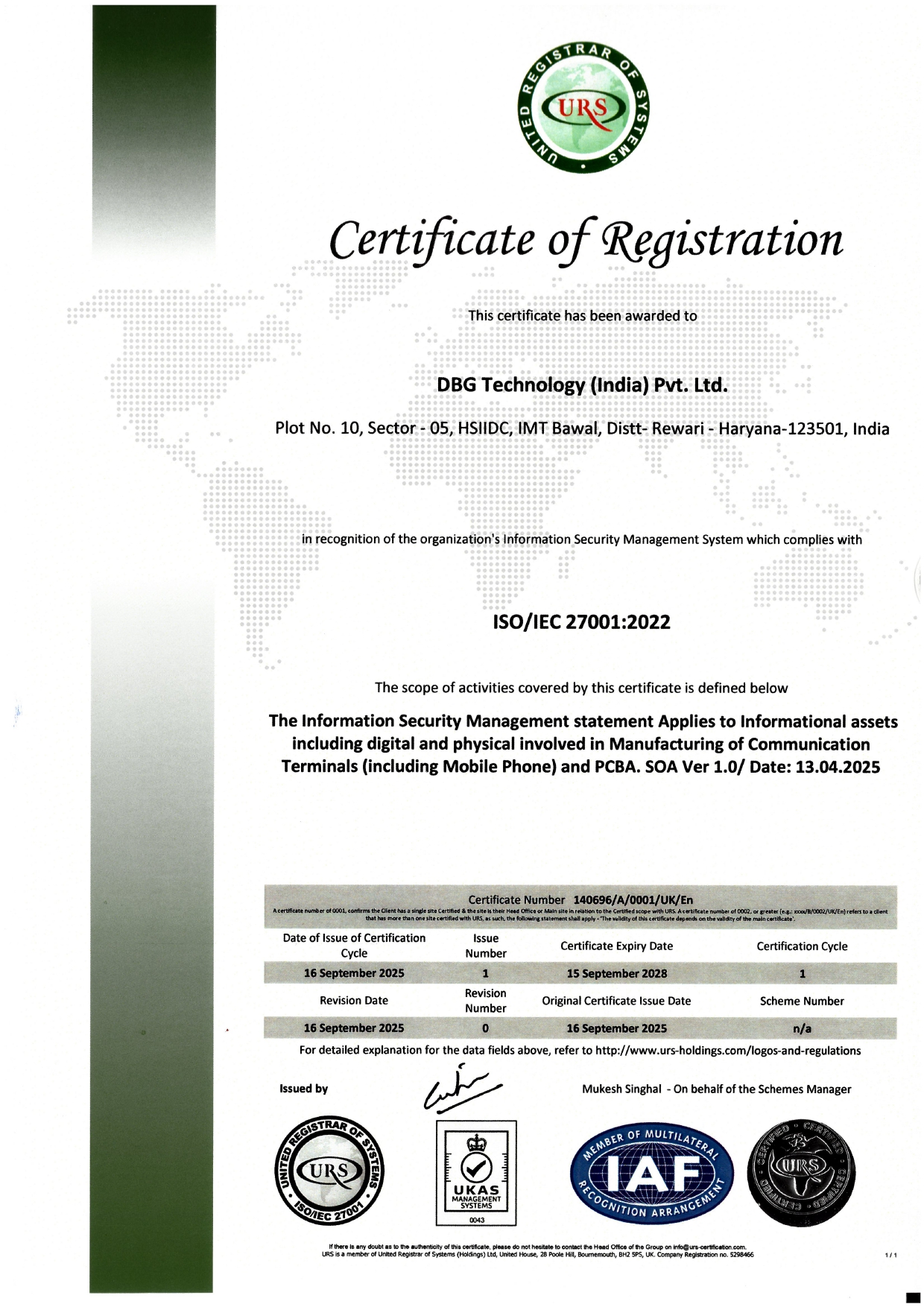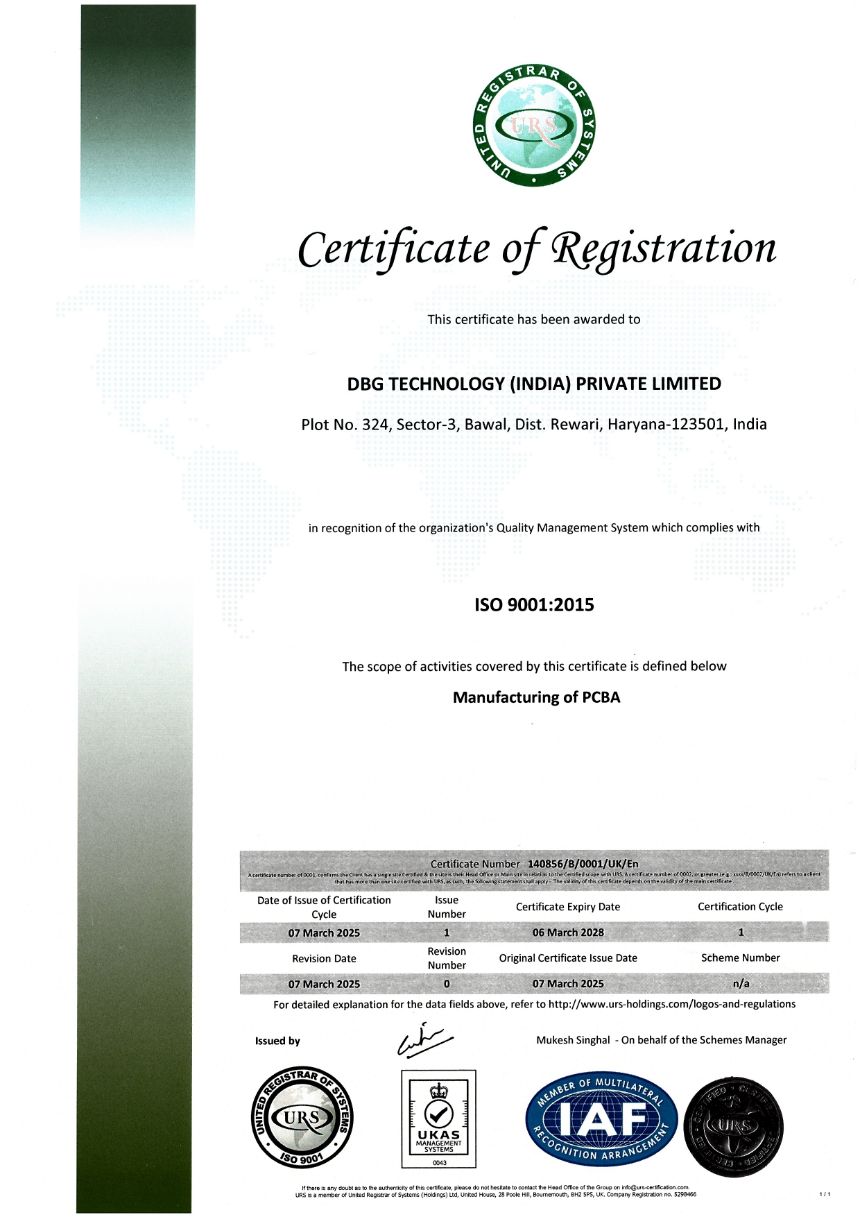 DBG India is an ISO 9001:2015, ISO 14001:2016 and ISO 45001:2018 Certified Company.